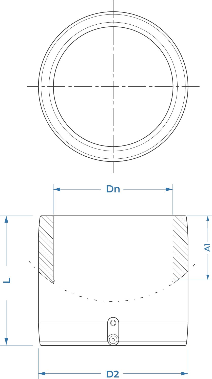 Cupla, moldeada por inyección en Polietileno de Alta Densidad (HDPE), diseñada para la unión lineal de dos tramos de tubería del mismo diámetro en redes de alta presión con requerimiento SDR 11.