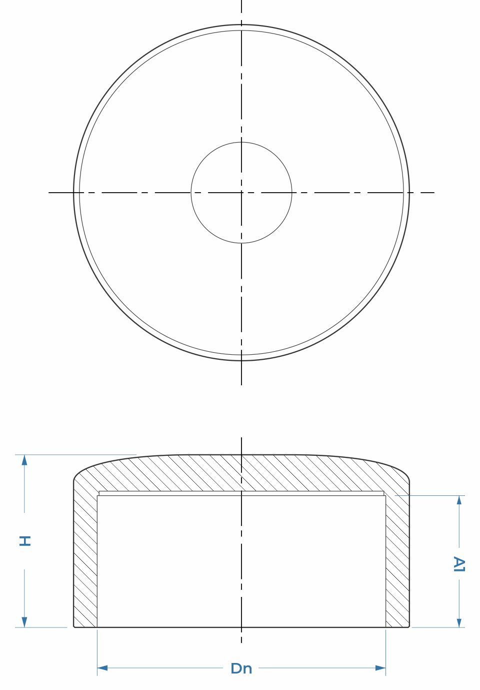 Tapa, moldeada por inyección en Polietileno de Alta Densidad (HDPE), diseñada para realizar cierres herméticos en los extremos de una tubería en redes de alta presión con requerimiento SDR 11.
